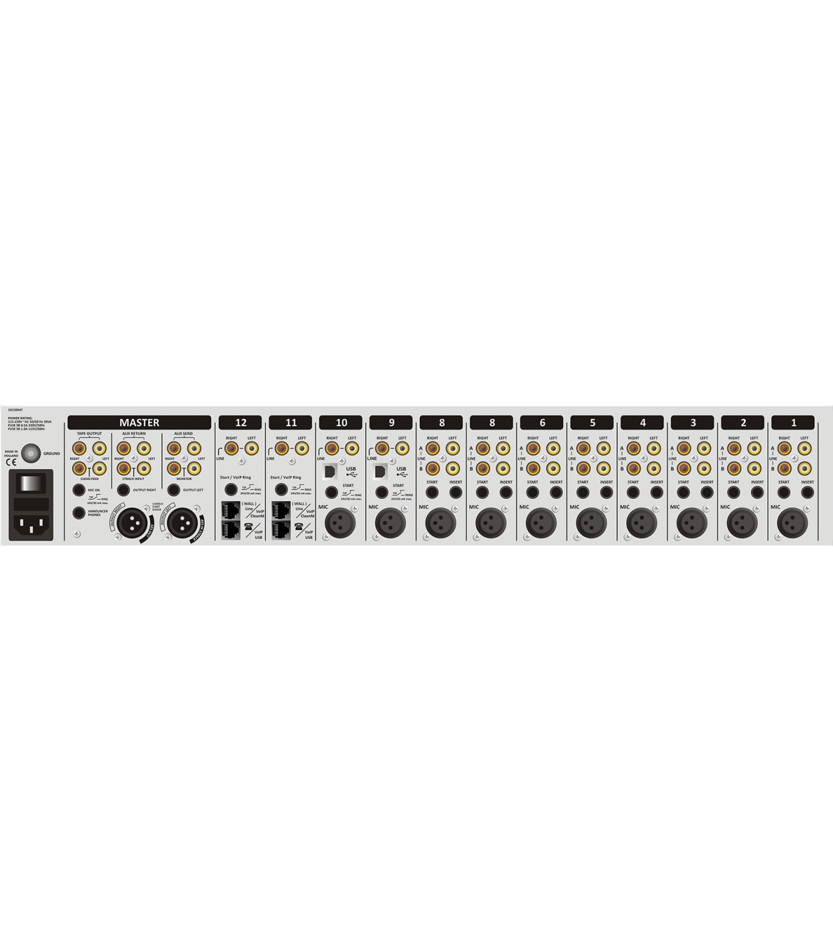Inoltre, ogni ingresso microfonico include un insert per processori di segnale, mentre ogni ingresso di linea può essere facilmente trasformato in un canale phono (per giradischi) con il preamplificatore phono stereo RIAA equalizzato opzionale.