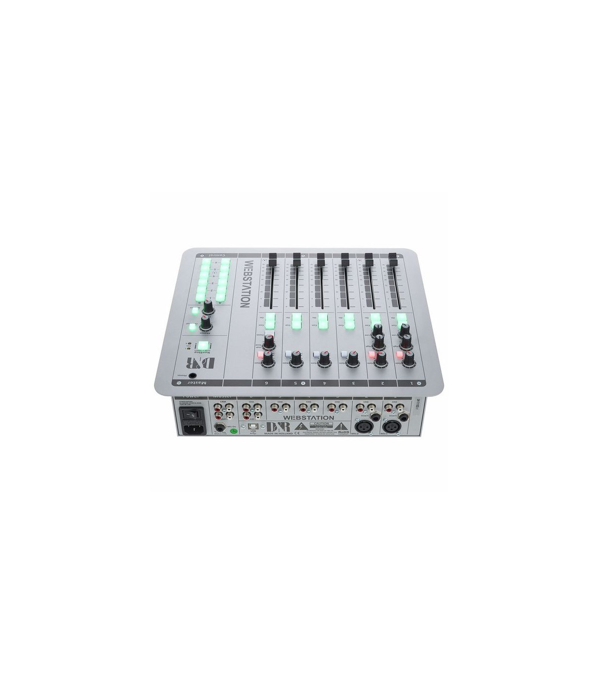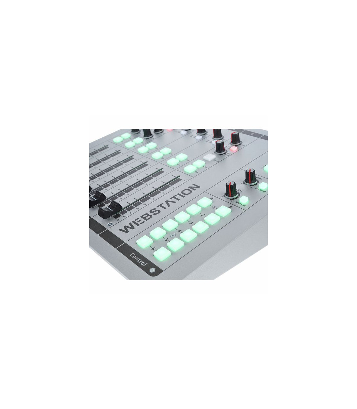 The WEBSTATION mixer has 2 balanced, phantom powered mic inputs with inserts for external voice processors. Six stereo line inputs, 3x USB channels and 1x Telephone VOIP channel.
